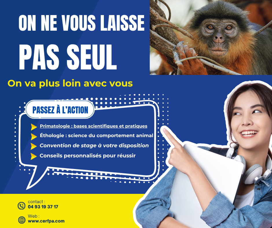- Ethologie et Primatologie - 50 % soit 297 € au lieu de 594 €, cliquez ici